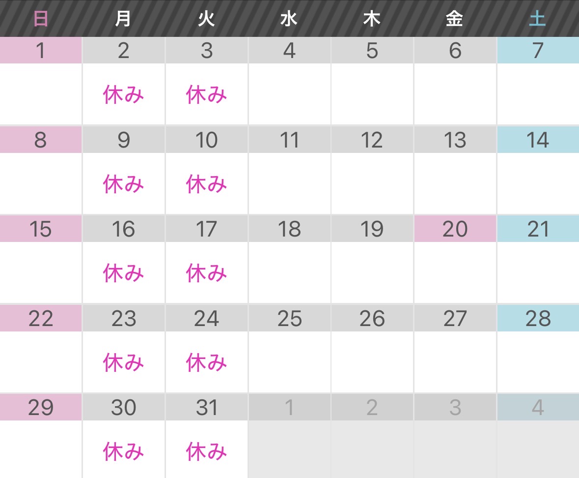 blog2026年2月28日3月のお休み。
