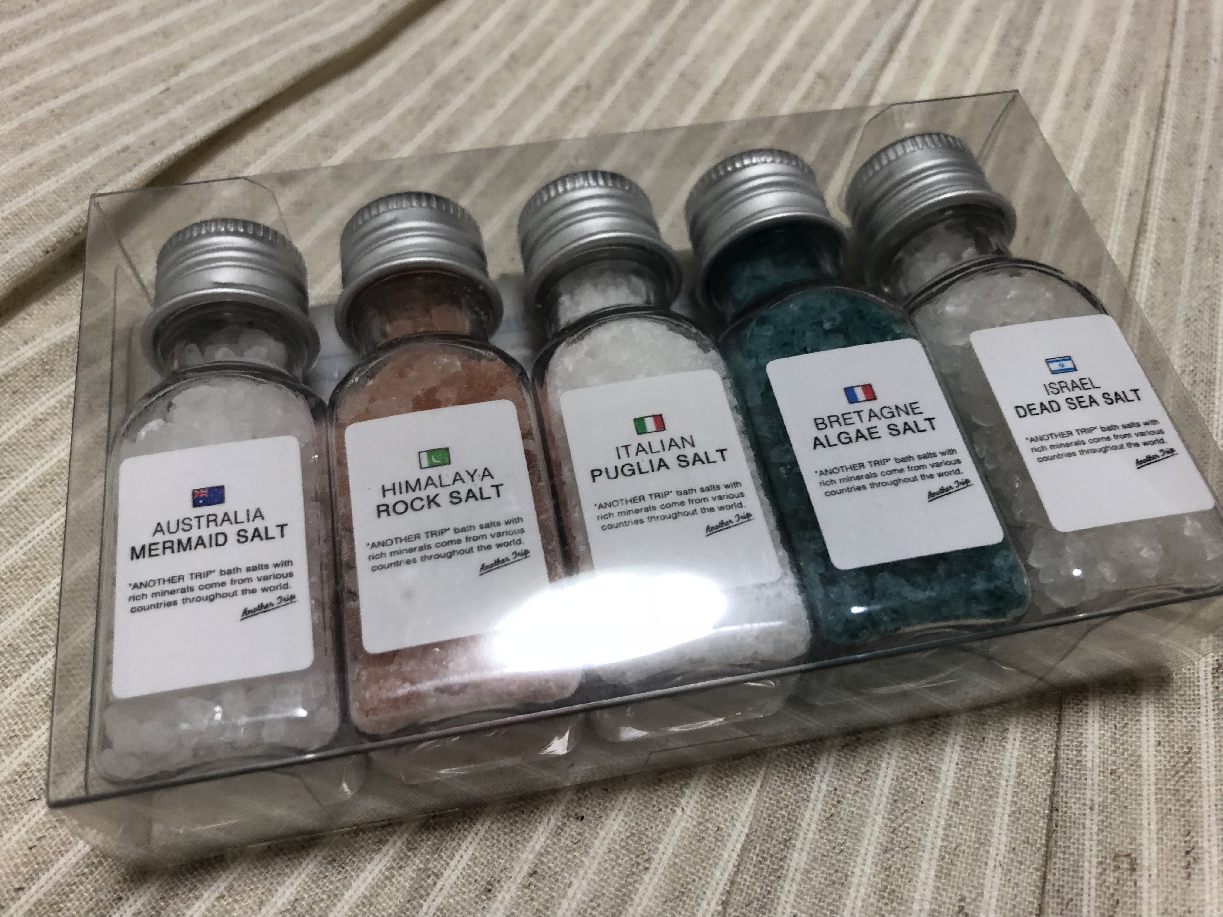 このバスソルトを入れてお風呂に入れば、なんとなくその国に行った気分になれます。笑