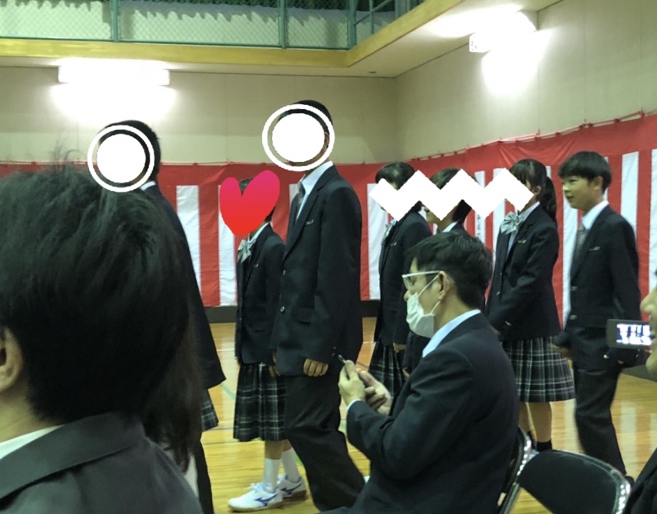 ブカブカの着慣れない制服を着て、我が息子も入場、